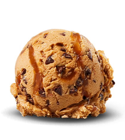 Jamoca® Coffee flavored Frozen Dessert with Chocolate Chips & Caramel Swirls.